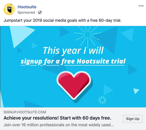 Misalnya saja iklan dari Hootsuite ini, sebuah tools digital marketing yang menawarkan uji coba gratis menggunakan software andalannya selama 60 hari.
