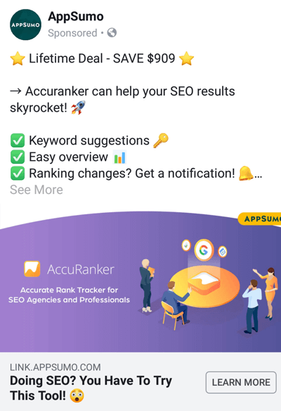 Misalnya saja dalam iklan ini, AB Tasty menggunakan eBook yang dapat diunduh secara gratis  untuk mengonversi orang yang mencari informasi lebih lanjut.
