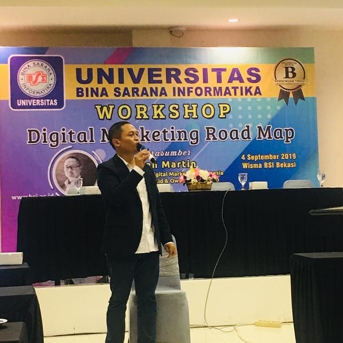 Ketua Umum Asosiasi Digital Marketing Indonesia diberi kesempatan berbagi ilmu Digital kepada Dosen dan pimpinan Kampus BSI dari seluruh Indonesia untuk “Materi Digital Marketing Road Map” di depan 70 Kepala pimpinan kampus BSI dari seluruh indonesia. Saat ini kampus BSI tercatat sebagai kampus dengan jumlah mahasiswa aktif terbanyak mencapai 40 Ribu Mahasiswa Aktif.